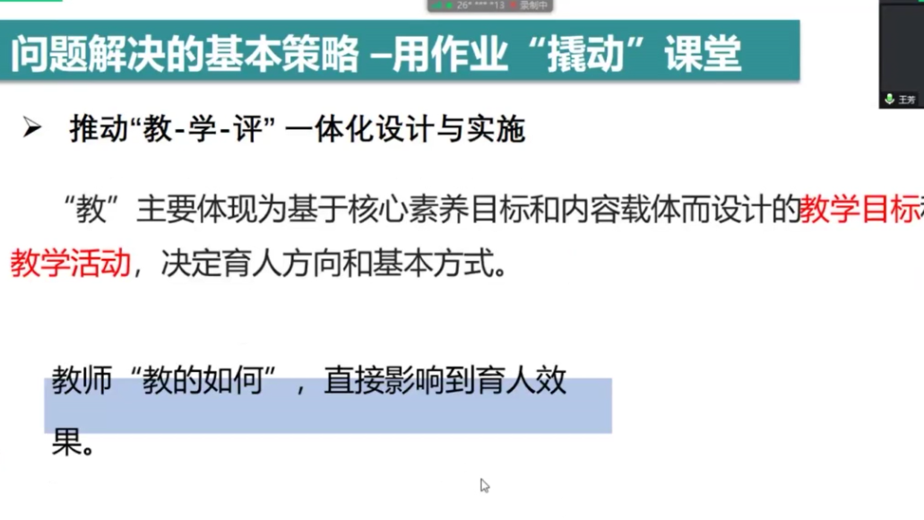 基于此,王老师提出,教师首先要提升对作业和作业功能的认识。作业既和课堂教学构成一个整体,是学生学习目标达成的自主学习过程,又是课堂学习的延续,可以巩固所学。此外,作业还具有多重发展功能,可以培养学生的综合能力。