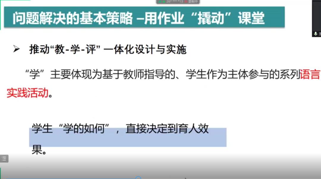 王老师通过案例详细解读了基于单元产出大任务的小学英语作业的设计与实施,指出明确作业设计和作业实施的质量理应成为衡量课程改革成效的关键尺度,也应该成为教师专业发展水平的重要标志之一。