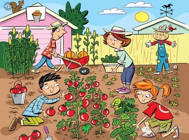 6个不同的单词小心翼翼地隐匿在农夫、植物和蔬菜中。小编认为这幅图是最难找的!