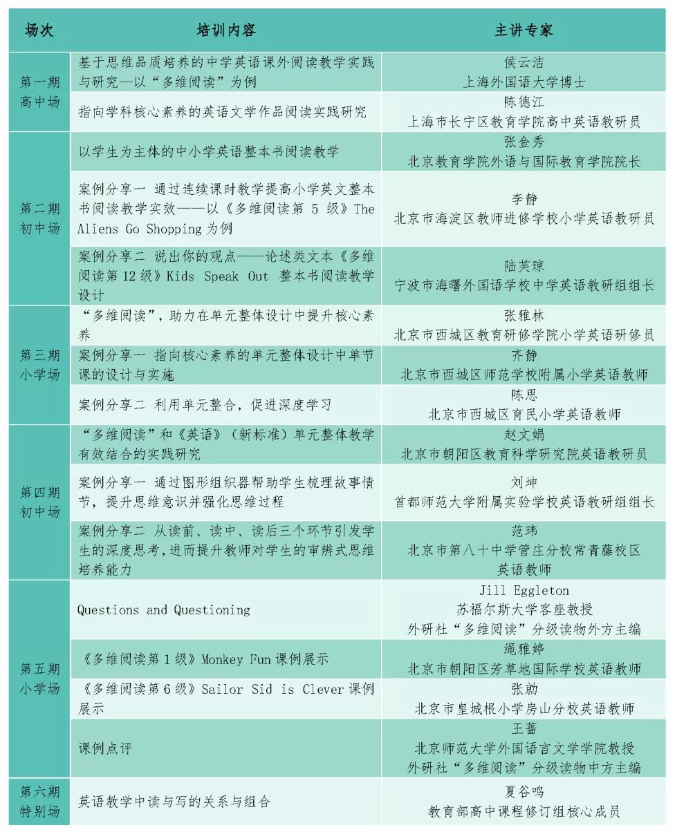 其中,“2021外研社全国中小学英语教师阅读素养提升在线课程” “2021外研社基础教材在线培训”回放视频均已上线Unischool教师发展平台,课表如下: