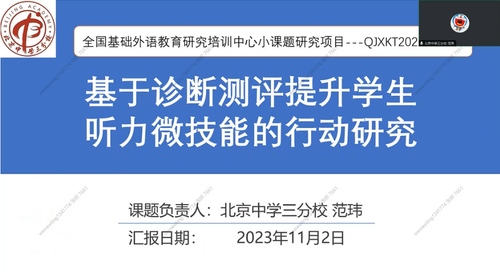 小初高3个学段9位课题负责人围绕基于新教材的课堂教学活动、听说教学及评价、作业设计与实施3个研究方向,分别代表课题组从课题研究的主要进展、阶段性成果、存在的问题和下一阶段研究计划等方面进行了汇报。在汇报中,他们系统而深入地阐述了自身研究的具体发现,描述了数据收集和分析的详细过程,探讨了实施的干预措施及其效应,为教育教学实践提供了有力的参考框架,受到了与会教师的认可和赞扬。