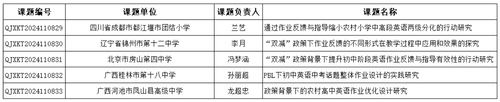 全基中心2024年度小课题研究项目于4月正式启动,设立4个研究方向,分别是:基于新课标的新教材分析与使用研究、中小学外语跨学科主题学习的实践研究、“双减”政策背景下的作业反馈与指导研究、国际理解教育课程与学生国际理解力培养研究。经项目专家组评审并报全国基础外语教育研究培训中心批准,现公布本项目2024年度课题立项名单,共计35个申报单位获批立项。