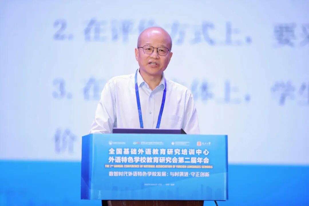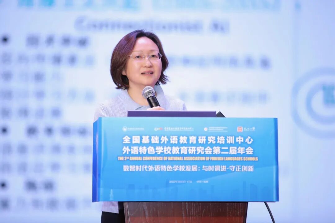 郑经潮强调,数字化与智能化正以前所未有的速度重塑教育形态,在此背景下,本届年会的召开正当其时,意义深远。杭州作为创新之城,正在展现出推动科技创新与产业融合上的强劲势头,而余杭作为杭州城西大走廊核心区,致力于打造具有全球影响力的人工智能创新高地,并将教育数字化改革作为教育高质量发展的关键抓手,努力让教育因科技而更精准、更高效、更个性化。本次年会不仅为全国教育同仁搭建了交流与展示的平台,也将进一步助推区域教育的创新发展,汇聚全国外语特色学校的智慧与力量,助力建设高质量的基础外语教育体系。